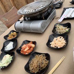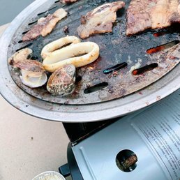 We all know the worst part of cooking is having to do all the dishes after- so imagine getting to cook the prepared food and not having to touch a dish after? Welcome to Korean BBQ. Great experience- you use the QR code to pull up the app where you can begin to choose the meats and side plates you want for your meal- we recommend ordering a few pieces at a time and not all at once as you want to eat as you cook everything fresh, and you will get full quick, it's great how you can keep ordering throughout your meal experience and the food selections come out quickly. They also switch out your hotplate and any utensils you want between the meat plates so everything stays clean along the way. The meats are delicious- personal favorites were the cuts of steak and pork, all perfectly prepared and presented nicely cut for us each time to put straight onto the hotplate to cook. We got a lot of selections throughout and left very very full. They give you small plates of apps/ sauces and condiments which is a nice touch and paired well with all the meat options. You will leave smelling like bbq but you will be full of delicious food so it's worth it. Lots of seating in a larger hall-like area inside and a hotplate to each table- quick service and even a scoop of free ice cream (if you can stomach it) after your meal, Everything quick and efficient. We went during the week for dinner and didn't have to wait for a table but it was busy inside. There is a live waitlist on yelp to join prior to getting to the restaurant to check on wait times. Highly recommend it.